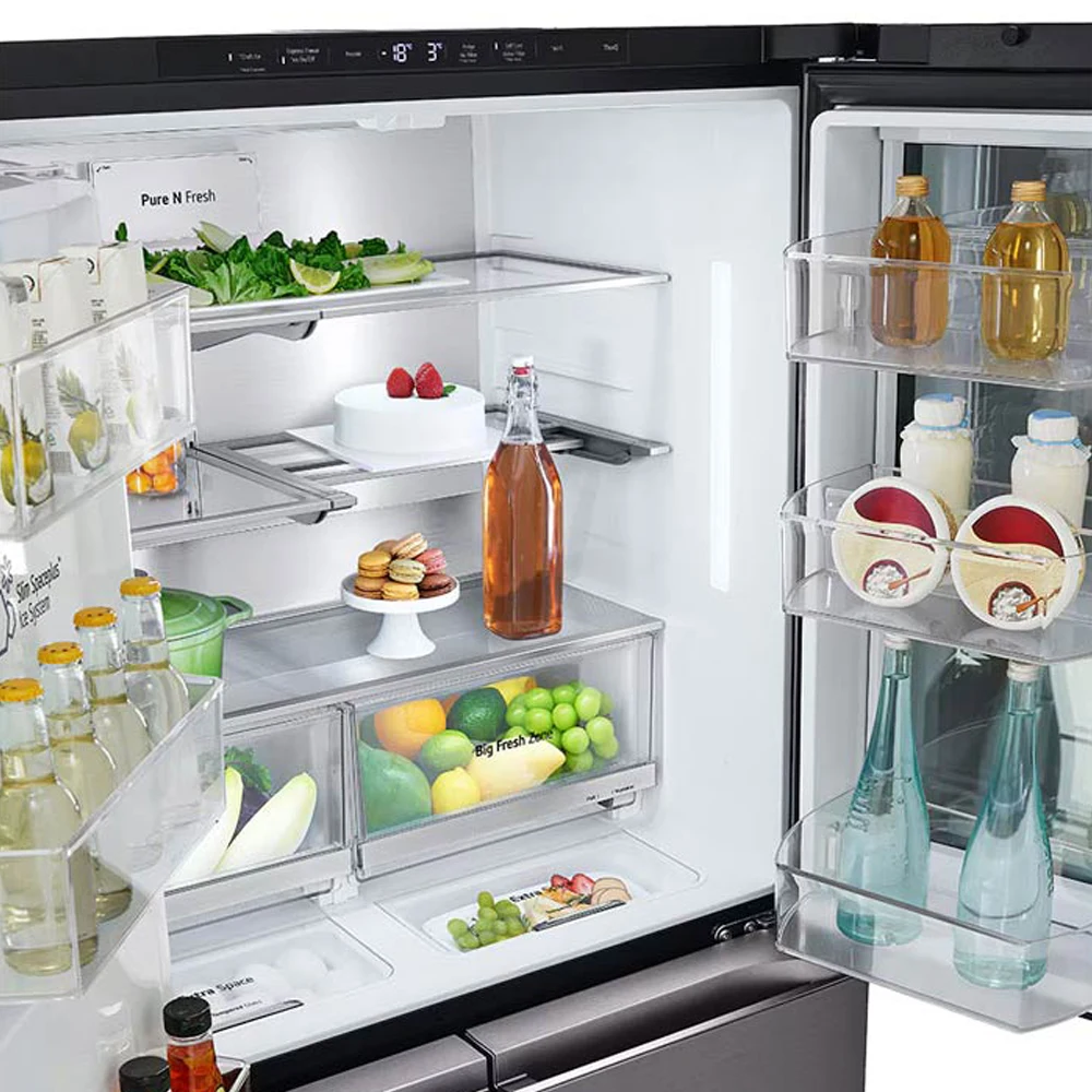 100% بدون برفک ,اینستا ویو با شیشه ضد ضربه و نشکن ,دارای قابلیت Metal Fresh ,دارای قابلیت Smart ThinQ ,دارای قابلیت دور کولینگ Door Cooling ,دارای کشو با تنظیم دما و رطوبت ,دارای یخساز سوم از نوع یخ کروی برای نوشیدنی ها ,فیلتر ضد بو |